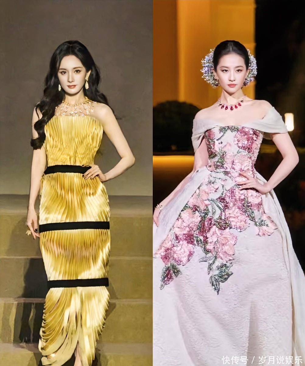 01杨幂和刘亦菲的明争暗斗,贡献了今年VOGUE红毯的最大“笑料”。这次杨幂和刘亦菲均获VOGUE给的顶级排面。杨幂作为开场嘉宾率先亮相,在直播走秀环节第一个出场。并且为了抢风头,在活动中途换了两套造型。而刘亦菲则享有压轴出场的特殊待遇,在杨幂开场走秀结束快一个小时才现身。而且作为宝格丽代言人,刘亦菲今晚那套珠光宝气的华贵造型,确实引得全场目光汇聚。